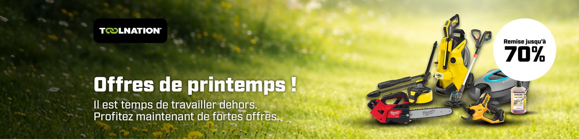 Le printemps approche à grands pas, et cela signifie une seule chose : il est temps de redonner vie à votre jardin ! Profitez dès maintenant de réductions allant jusqu’à 70 % sur les machines de jardin et préparez votre jardin pour la nouvelle saison.